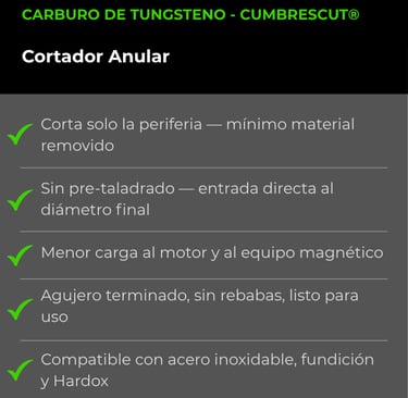 Cortadores Anulares con Insertos de Carburo de Tungsteno