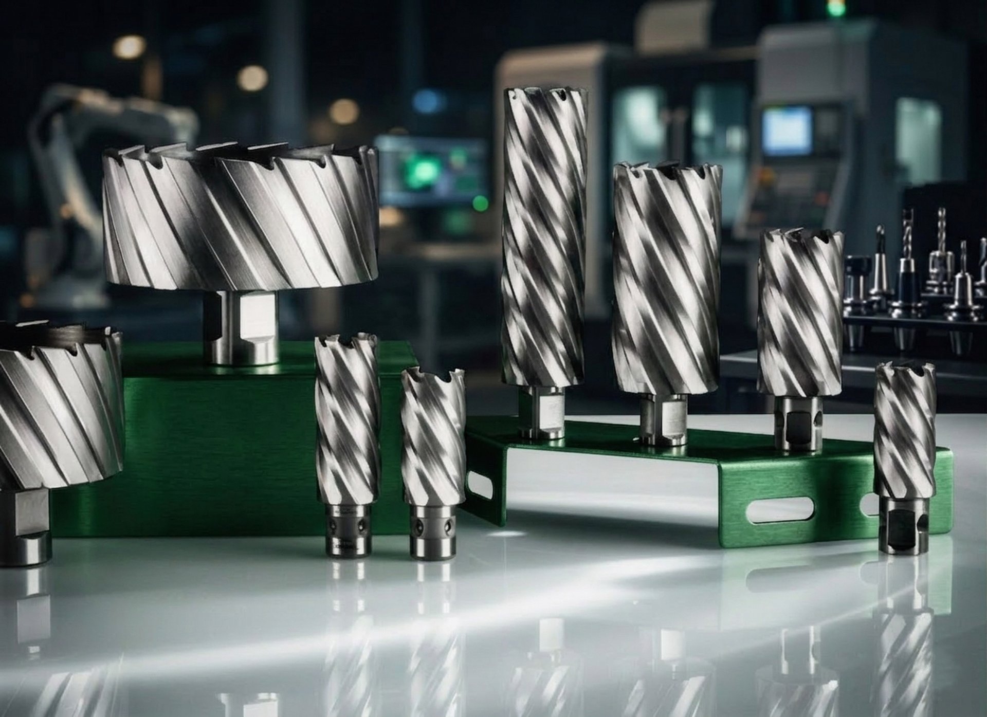 El HSS opera eficientemente a velocidades más bajas que el de insertos de carburo de tungsteno para los mismos diámetros. Esto reduce la temperatura de operación del motor del taladro magnético y extiende la vida de rodamientos y engranajes — especialmente relevante en operaciones de producción de múltiples agujeros por día.