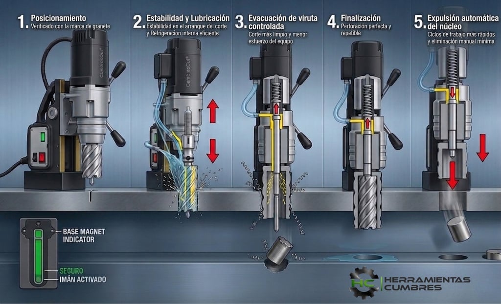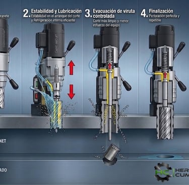 En CumbresCut®, cada cortador anular está diseñado para operar con piloto centrador porque cumple tres funciones críticas:
